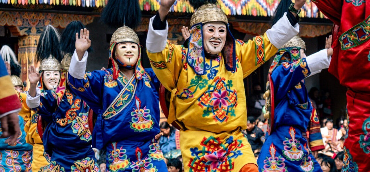 Monk dances: Colorful silk costumes, handcrafted masks